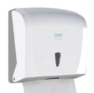 Властивості: Диспенсер виконаний з ударостійкого пластику. Білий пластиковий корпус має глибину 120 мм і вміщує до 300 листів; підтримує ширину пачки до 120 мм і максимальну довжину листа 25 см. Для гігієни та безпеки передбачено замок із ключем і кріплення в комплекті. Розміри, мм (ДхШхВ) 255х120x240.