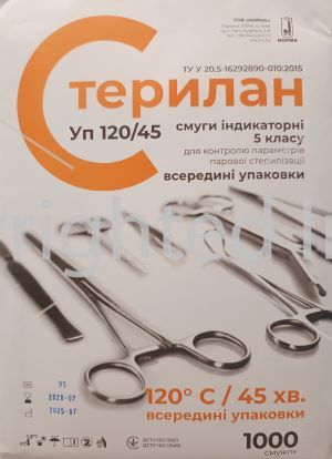 Індикатори парової стерилізації «Стерилан 120/45» призначені для візуального контролю дотримання режиму парової стерилізації при 120°С протягом 45 хвилин всередені упаковок (біксів тощо) і зовнє упаковок.