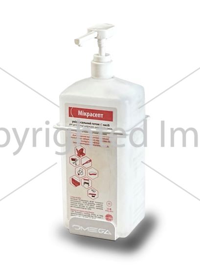 Призначення: пристрій для професійного застосування в медичних закладах, харчових підприємствах, установах з великою кількістю відвідувачів для настінного розташування флаконів об'ємом 1 л з антисептичними засобами, рідким милом, кремом тощо.
